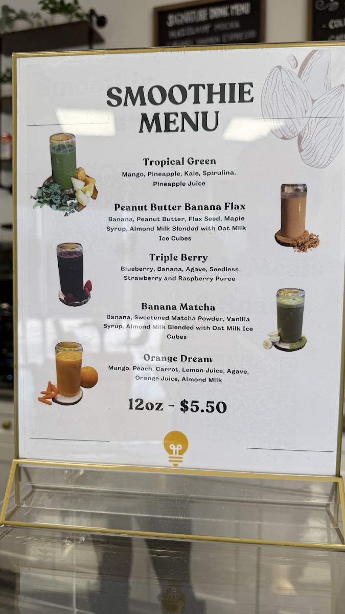 A creamy blend of ripe bananas, smooth peanut butter, heart-healthy flax seeds, and a touch of maple syrup, all mixed with almond milk and oat milk ice cubes for a satisfying and nutrient-packed smoothie. The perfect balance of protein, fiber, and natural sweetness!